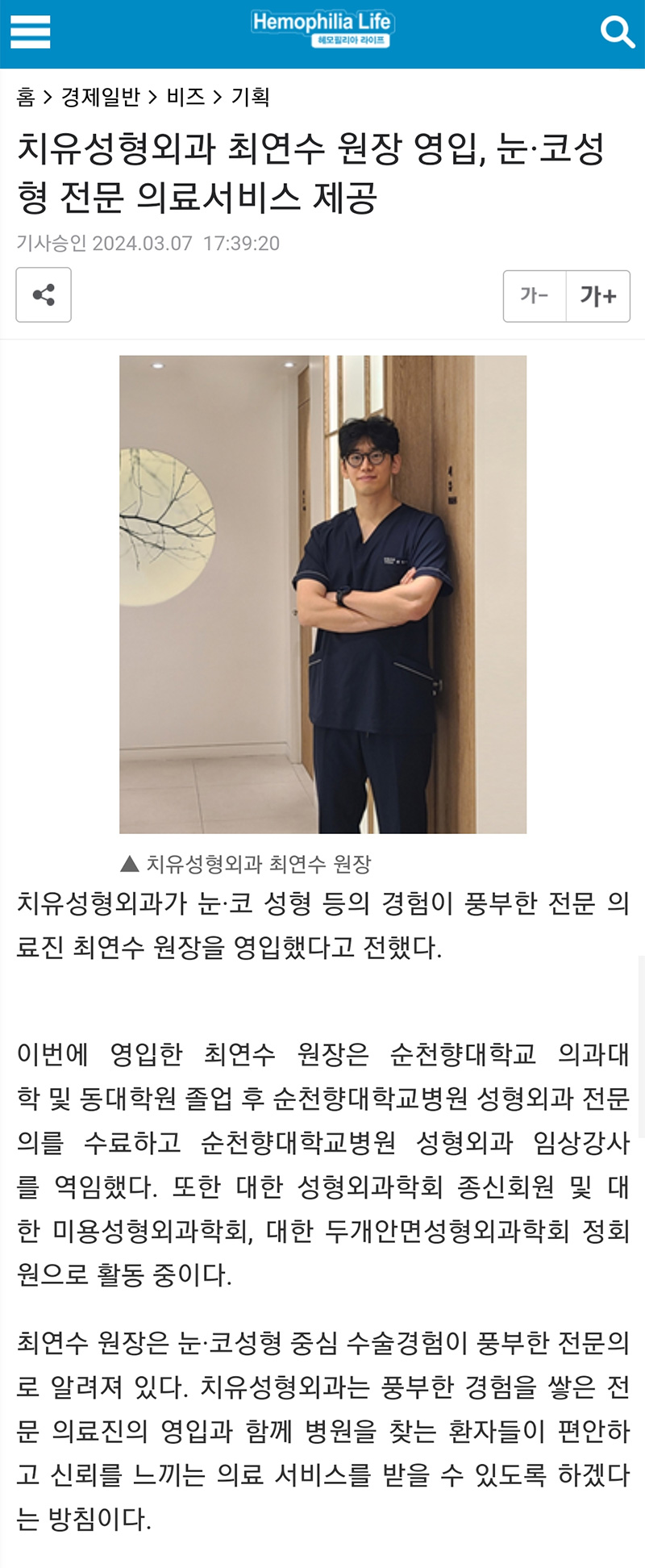 치유성형외과 의료진은 최선의 진료를 위해