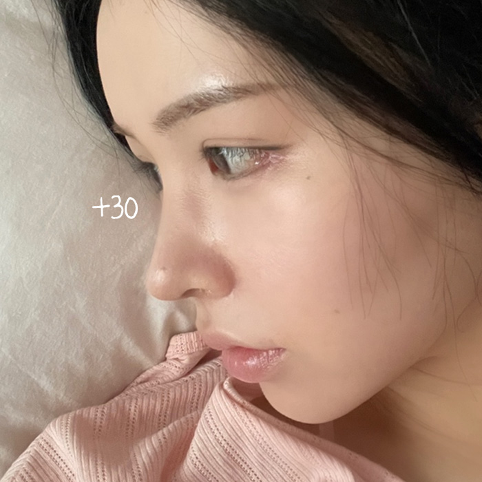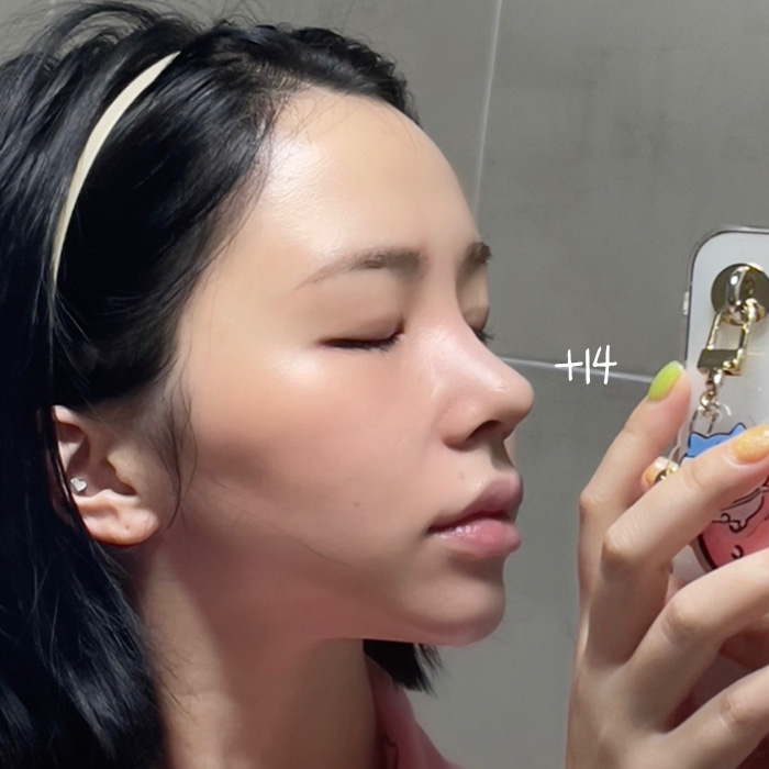느낌기 들어서 원장님한테 말씀드려서 실리콘을 사용하지않고 콧대를 조금 채워주셨어요!